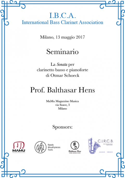 Sonate für Bassklarinette oder Fagott (Violoncell)und Klavier, op. 41, by Othmar Schoeck (1886-1956)(composed in 1927-1928)published by Breitkopf und Härtel, Leipzig in 1931 Werner Reinhart's musicality and skill were the inspiration for the first important work of structurally complex chamber music: Schoeck's Sonate, op. 41, in the German-romantic tradition of Brahms for the bass clarinet. Reinhart, to whom the Sonata was dedicated, was a close friend, as well as patron, of Schoeck (1886-1956). The Sonata was, according to Schoeck's biographer, Hans Corrodi, the first result of a period of deep study by the composer of the works of J.S. Bach.© Thomas Aber Read more on the Thomas Aber's dissertation: " the="" twentieth="">(p.123-125) (registration needed). Read more on the Thomas Aber's dissertation: " the="" twentieth="">Info on Otmar Sock's Sonata here (registration needed) You may also purchase the Sonata at the editor's online shop